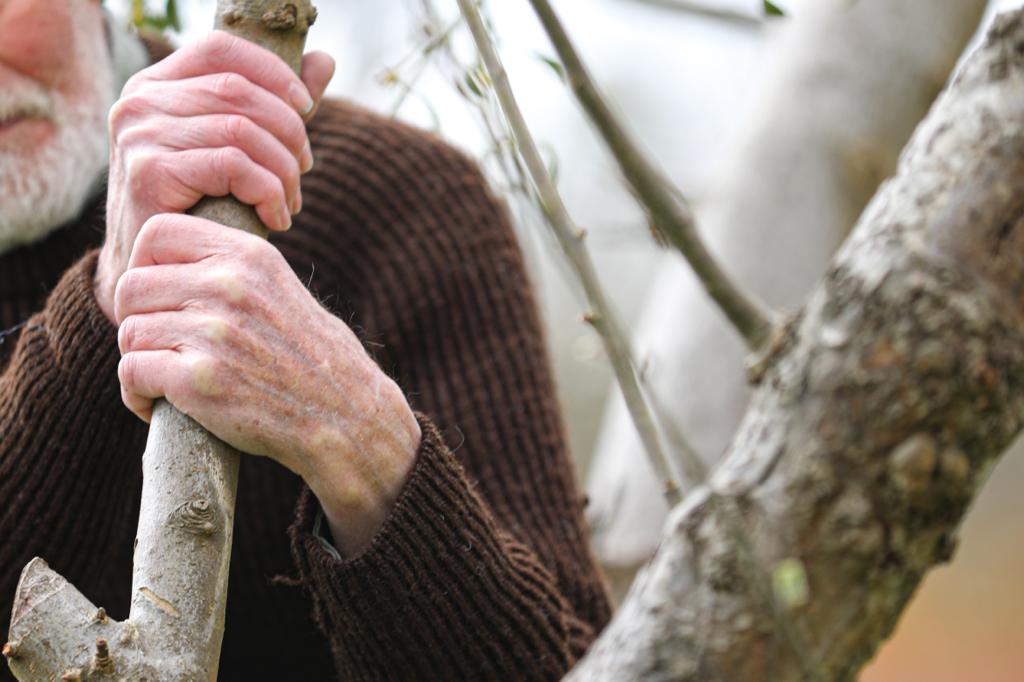 Filmed over a year through the four seasons, Orchard Portraits features five senior performers, each in a meditative and elegant duet with their chosen ageing tree. As human and tree become entwined almost as one, there is a sense of deep unity seeming to pay tribute to humanity’s ancient and ongoing intimate relationship with trees. In contrast we are reminded of natures’ cycles of regeneration as 60 school children burst through the orchard in moments of joy and discovery.